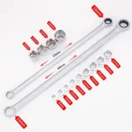 Extra Long Flex-Head Ratcheting Wrench Set includes all 9 sizes of hex heads from 8mm to 17mm and 4 sizes of sleeve heads from 18mm to 24mm.