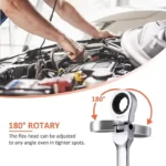 * 180-DEGREE ADJUSTABLE — The flex-head ratchet wrench is 180-degree rotated and can perform precise repair work in any space.