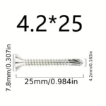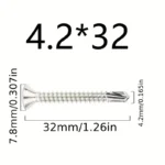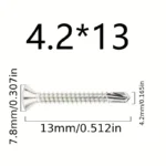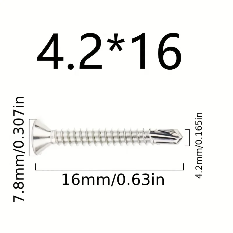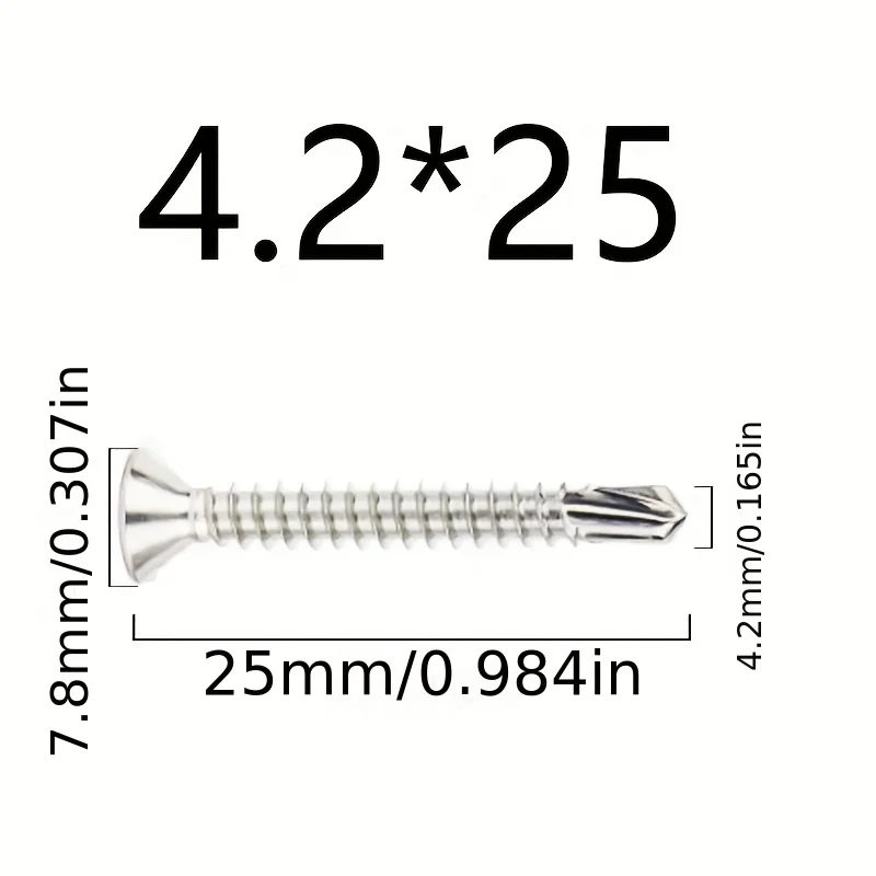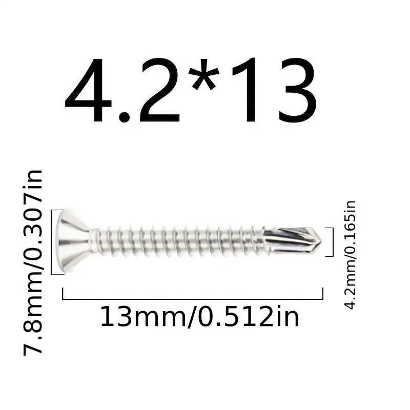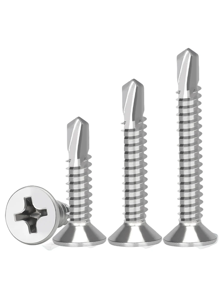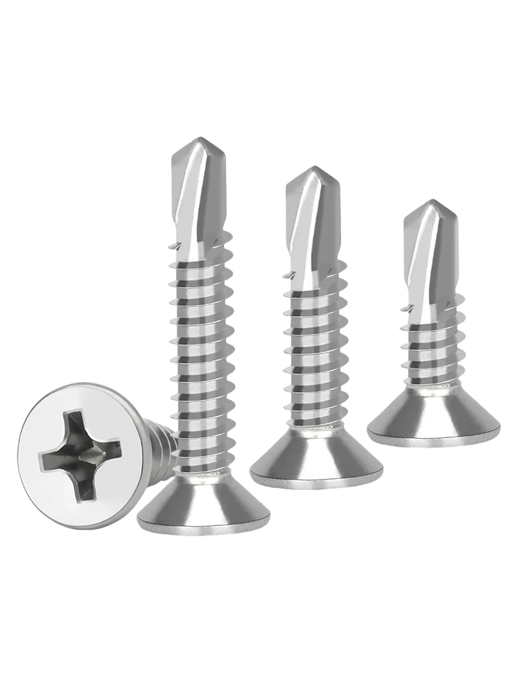 50PCS #8 M4.2 410 Sheet Metal Self-Tapping Screws 410 Stainless Steel Flat Head High-Strength Quick Self-Drilling Screws