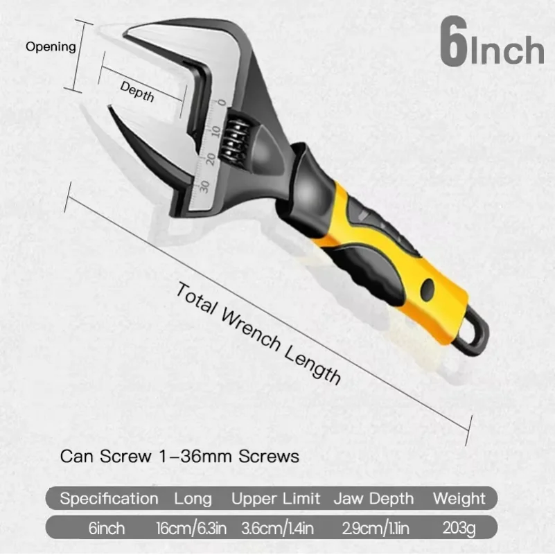 Adjustable Spanner Universal Key Nut Wrench Opening Wrench Home Hand Tools Multi Tool 6inch 8inch 12inch