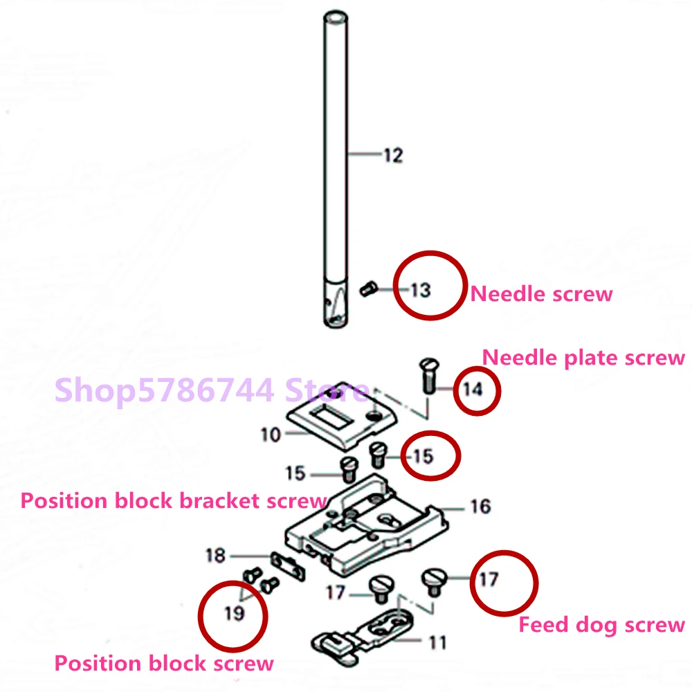Needle plate Screw & Feed Dog Screw & Needle Screw & Presser Foot Screw & Position Block Bracket Screw & Position Block screw For PFAFF 335H,335,335G