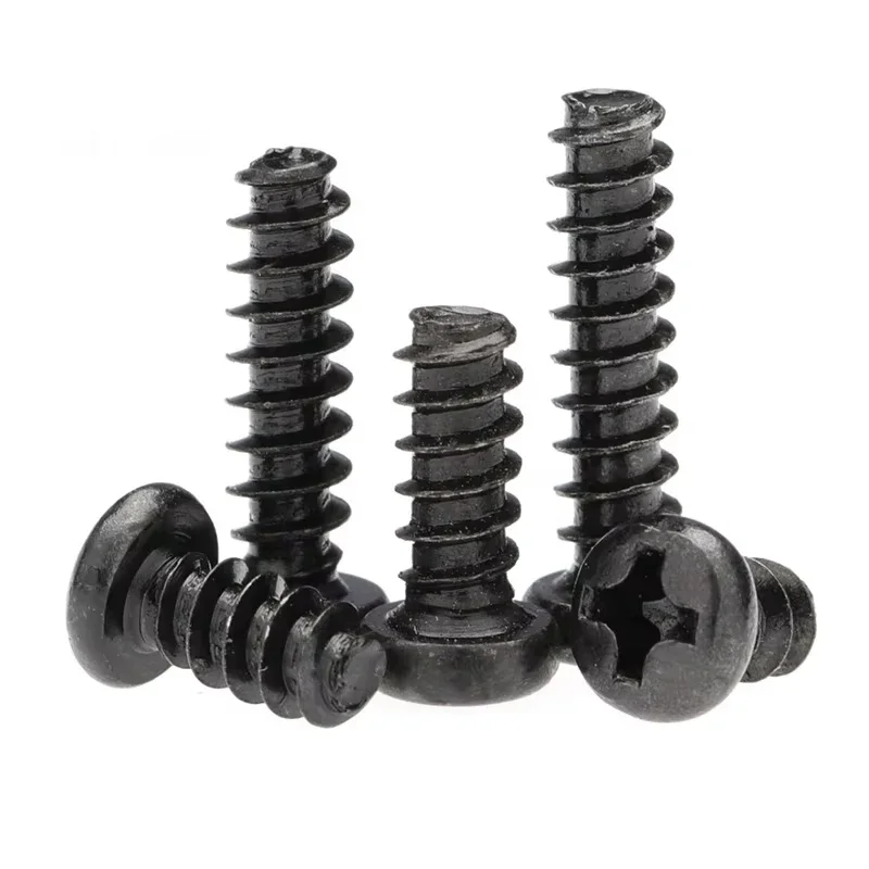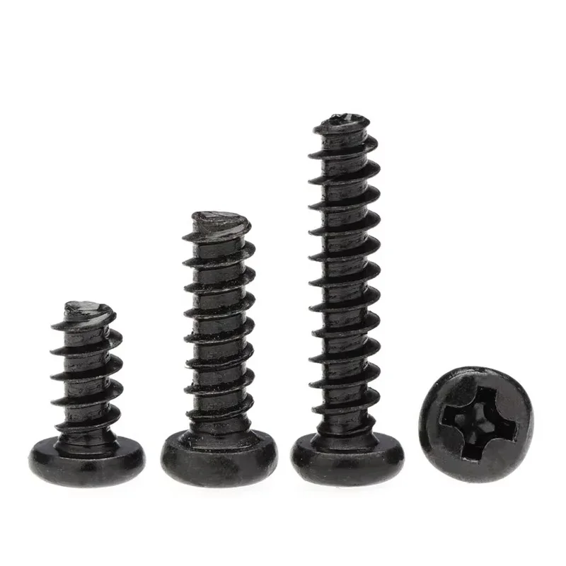 Phillips Round Head Flat Tail Tapping Screws M1.4 M1.7 M2 M2.3 M2.6 M3 M3.5 M4 Black Carbon Steel Phillips Tapping Screws